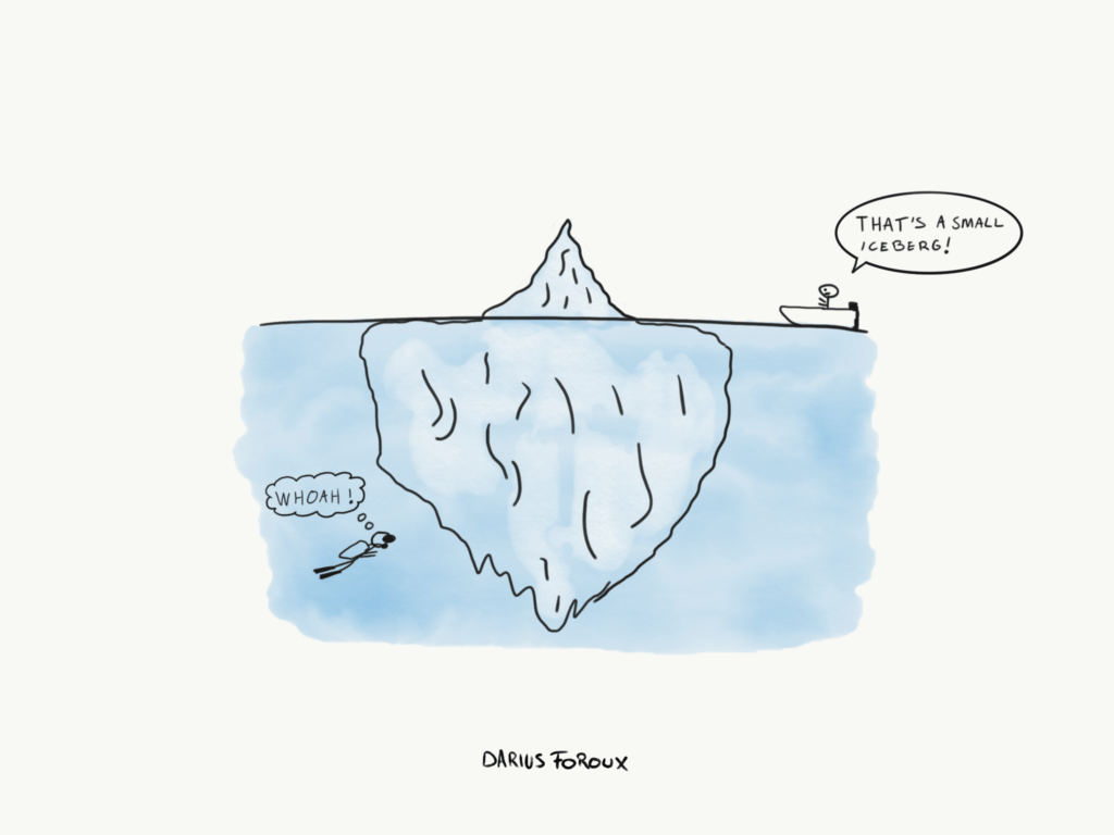You can apply this concept to everything in life. We always see the surface. We see the tip of the iceberg. But we have no clue what that iceberg looks like below the water. That’s the stuff you don’t see unless you take a deep dive.