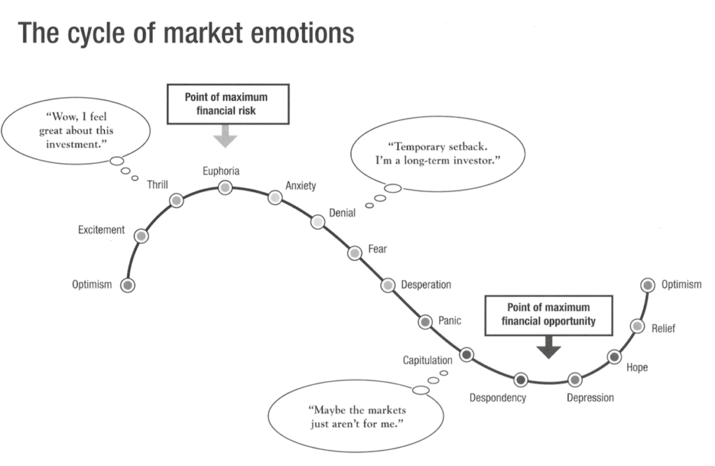 Understanding cycles will only help you to understand where you are now. When it comes to investing, Marks recommends to “figure out where we stand in terms of each cycle and what that implies for our actions.” Here’s what a market cycle looks like:
