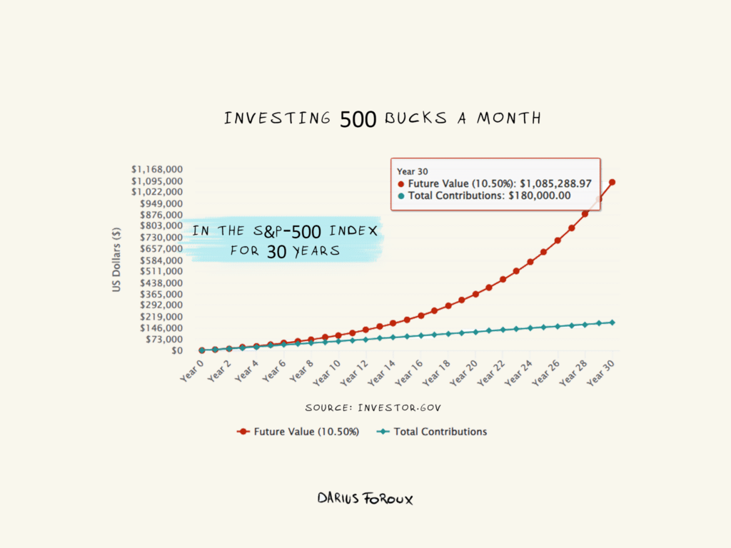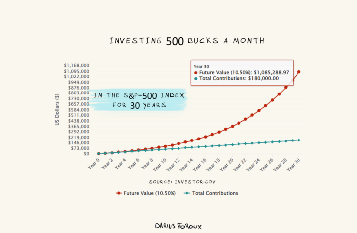 But that’s okay. Because you will see that your money is doing its work. Especially in the stock market. The S&P 500 goes up and down. Up and down. But it doesn’t die. In the past 30 years, despite wars and pandemics, the S&P 500 still averages a 10.7% annual return.1Source: The Motley Fool