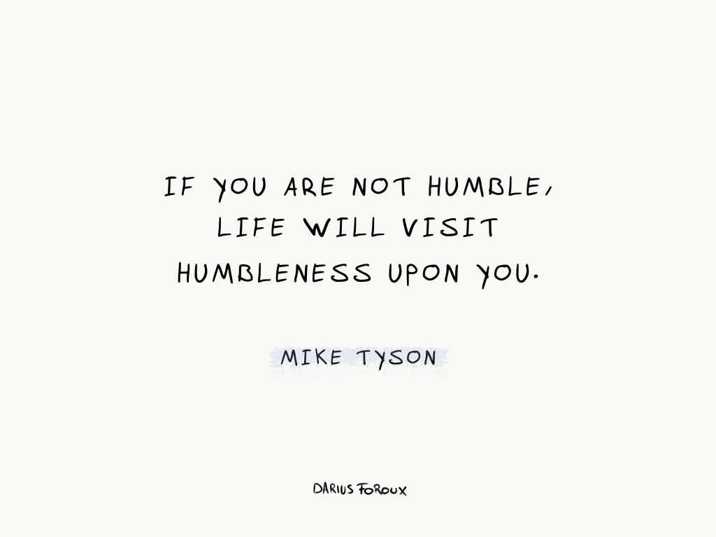 Mike Tyson put it best: “If you are not humble, life will visit humbleness upon you.”
