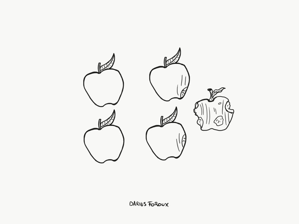 So what happens when you allow a single rotten apple in your group? The group falls apart. One of my friends, who’s the CEO of a mid-sized company, recently told me about making the mistake to hire a negative person. His sales team performed great and posted double-digit growth 5 years straight and he wanted to expand.