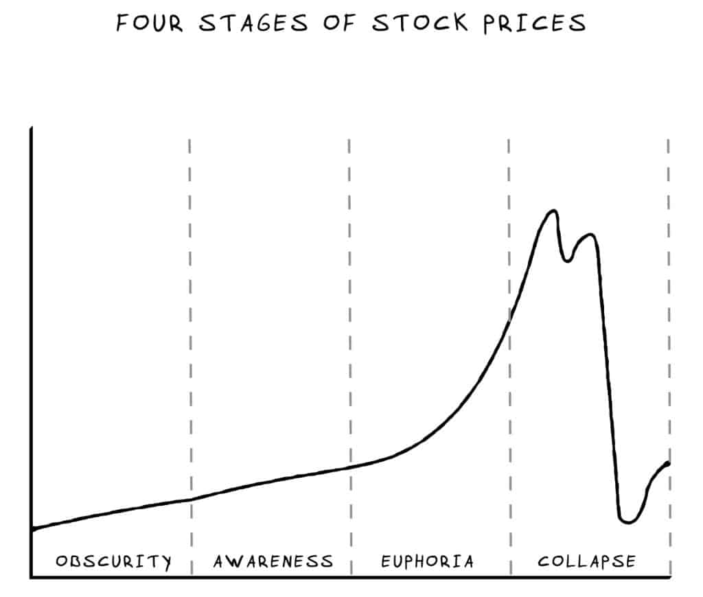 Most individual investors get excited about stocks at the end of the Awareness and beginning of the Euphoria stage. During that time you can’t make mistakes in public markets as long as you’re bullish.
