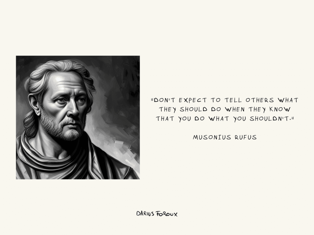 “Don’t expect to tell others what they should do when they know that you do what you shouldn’t.” — Musonius Rufus